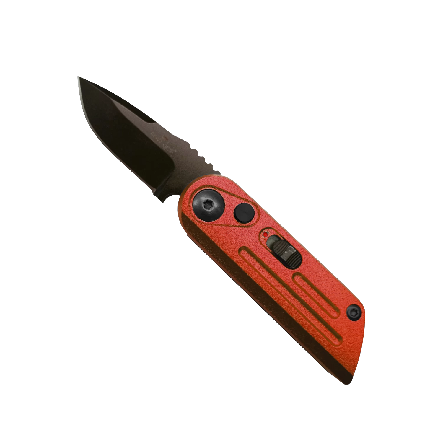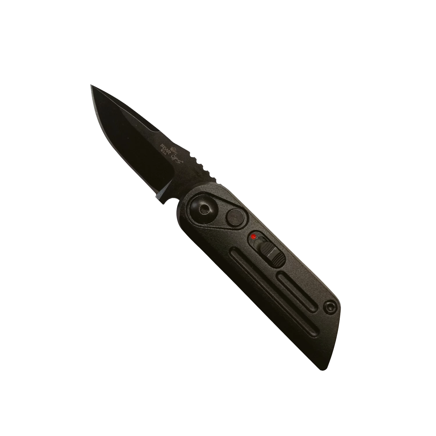 The Bear Ops AC-1400 is part of the Auto Bold Action® XIV series. The Hollow Ground 1-1/2″ blade edge is made with Sandvik 14C28N Premium Steel with a Black Finish allowing for a tough blade with great edge retention. The blade quickly opens with a press of the raised button with a safety lock switch just below. Although it is an automatic, the small blade size makes it legal to carry in the State of California . The Stainless Steel 2-1/2″ handle features a pocket clip for tip up carry. The Bear Ops AC-1400 has an overall length of 4-1/4″ and weighs 1.4 ounces. Bold Action® XIV is proudly made in the USA.