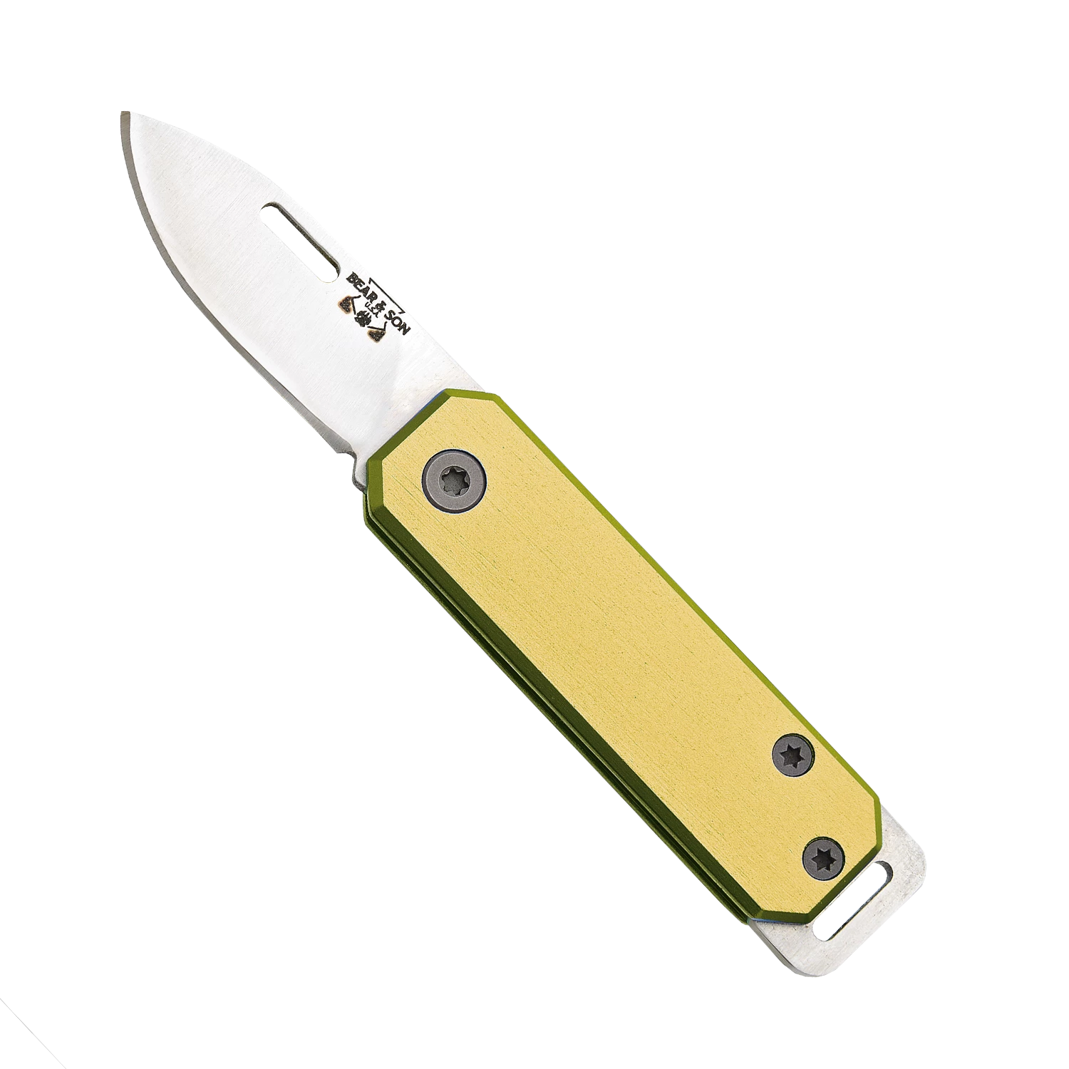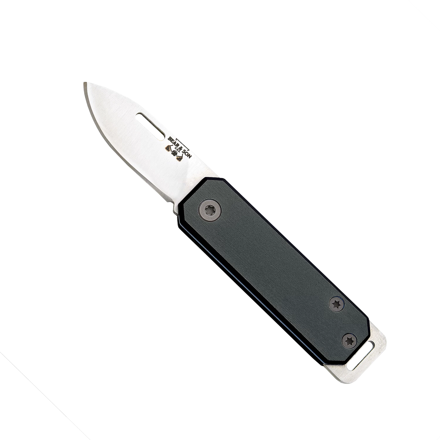 The Bear & Son 109 is a Lightweight Slip Joint Drop Point with an Aluminum Handle. The Taper Ground 1-1/2″ Drop Point Blade is made from High Carbon Stainless Steel, making it rust resistant, easy to sharpen, and will hold an edge exceptionally well. The Bear & Son 109 has a hollow nail nick present to open the blade. The Bear & Son 109 has an overall length of 4-1/8″ and is a good size to fit in the pocket, purse or on a key chain. The 109 weighs 1.0 ounces.