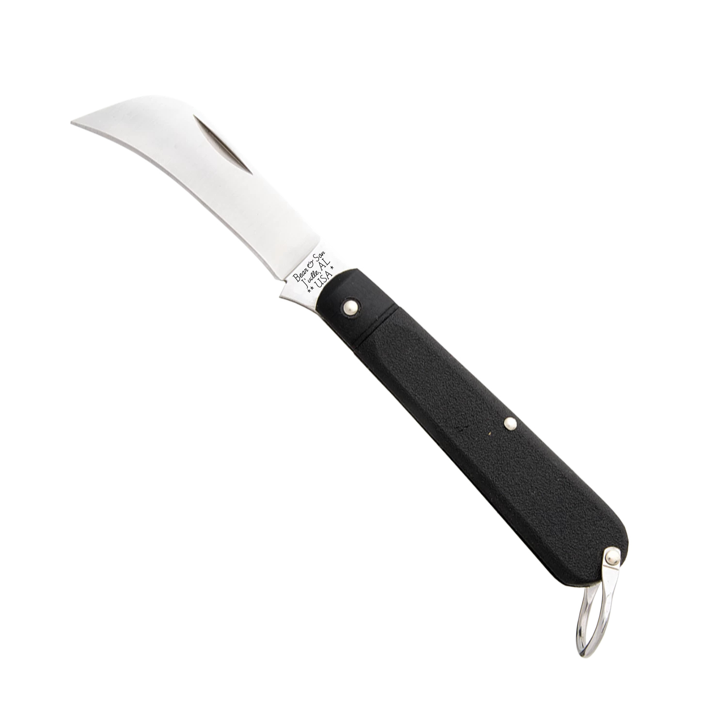 The Bear & Son 7116HB is a Black Zytel® Knife. The Hollow Ground 2-3/4″ Hawbill blade is made from High Carbon Stainless Steel, making it rust resistant, easy to sharpen, and holds an edge exceptionally well. The 3-3/4″ Black Zytel® Handle is lightweight and features a bail loop on the back for secure storage or fastening. The Bear & Son 7116HB blade features a traditional slip-joint lock that is easy to open and close. A Nail Nick is present on the blade so they can be easily opened. The Bear & Son 7116HB has an overall length of 6-3/4″ and perfect on the tool belt for an electrician, carpenter, or anyone that needs to cut or carve. 7116HB weighs 1.2 ounces.