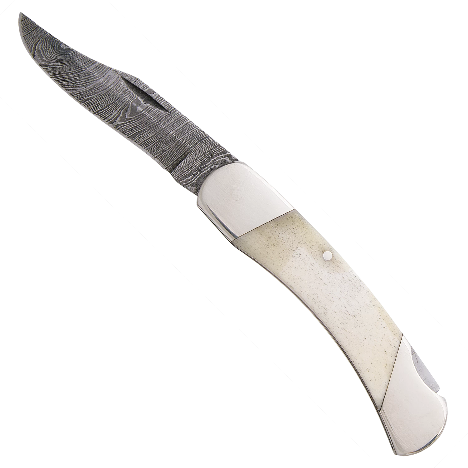3-3/4 in. White Smooth Bone Damascus Midsize Lockback