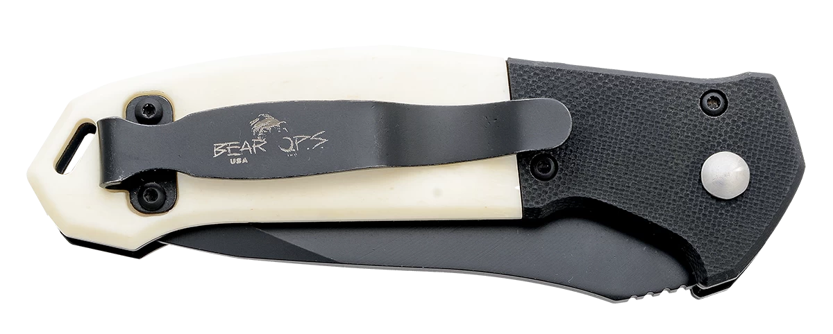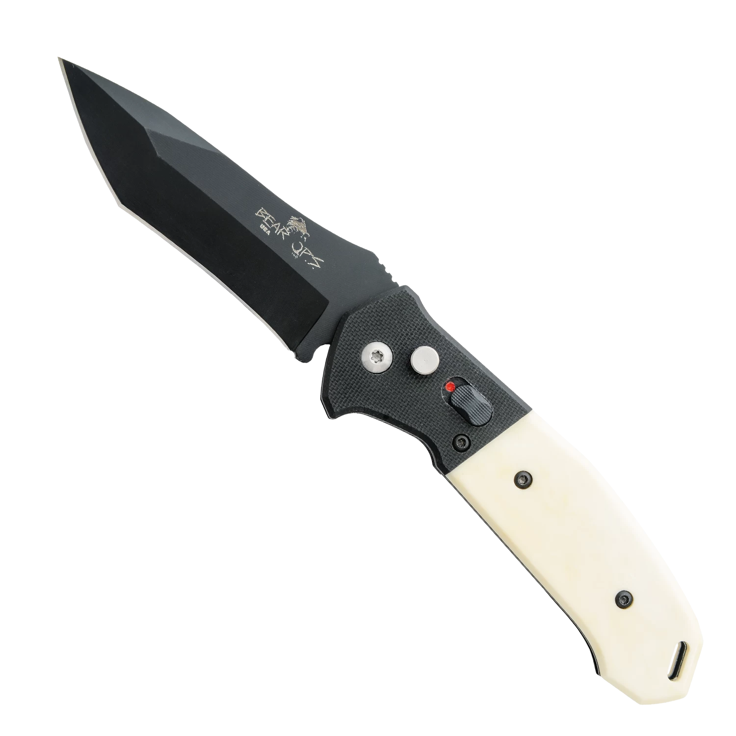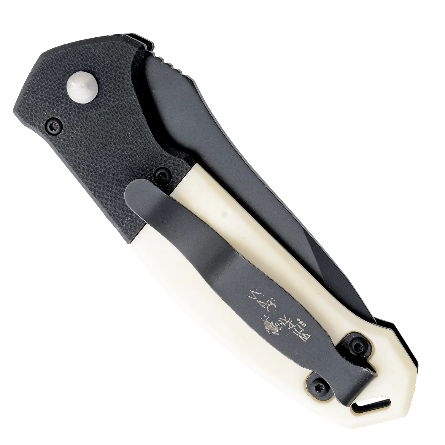 4-1/2 in. Black G10 and White Smooth Bone Auto w/Black Finish Blade