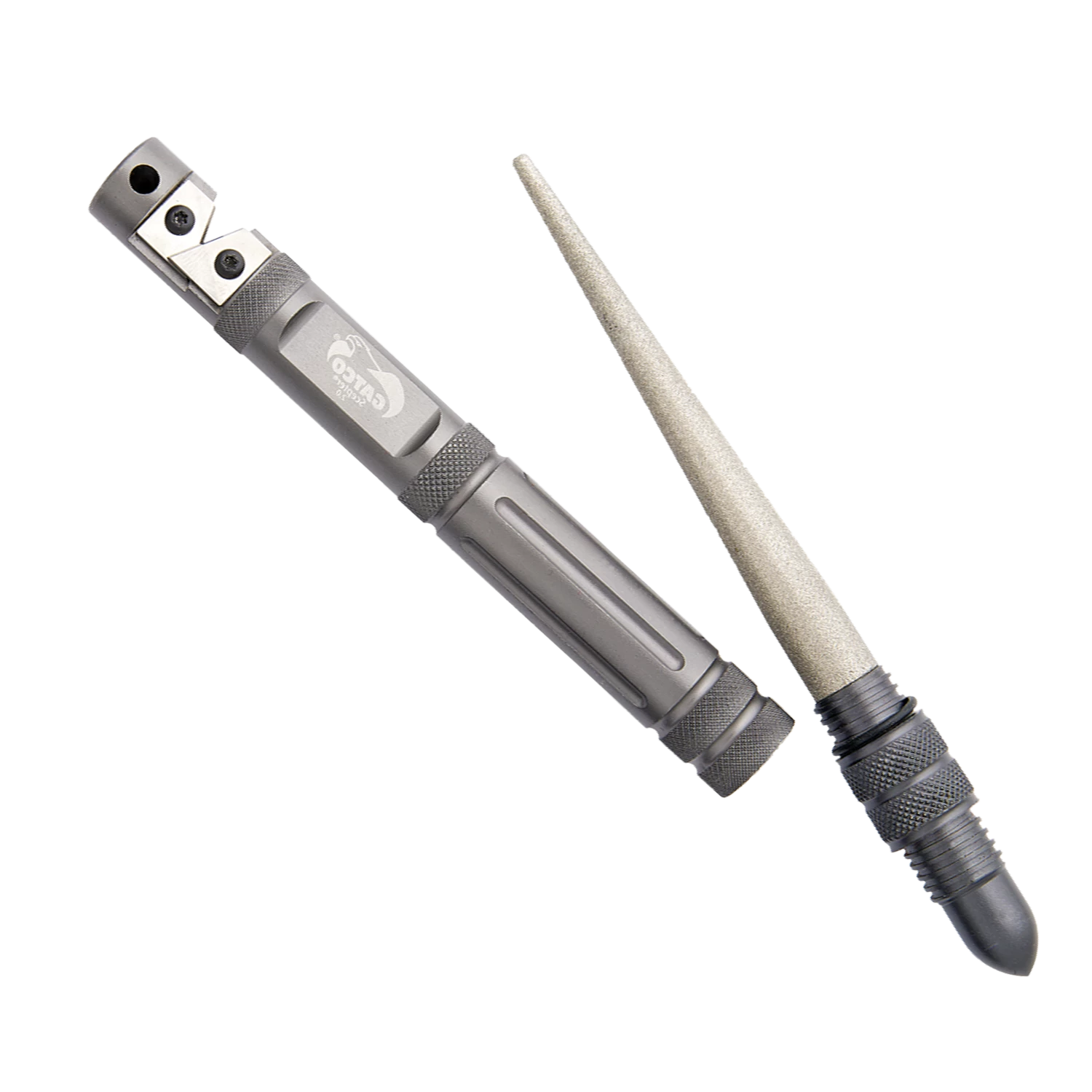 Compact, lightweight and multi-functioning, the new GATCO® Sceptor 2.0 is the ultimate survival aid when sharpening and fire starting or necessities. Unique design nests magnesium fire rod inside tapered diamond sharpener and all are inside the CNC machined, solid 6061-T6 aluminum carbide sharpener body.