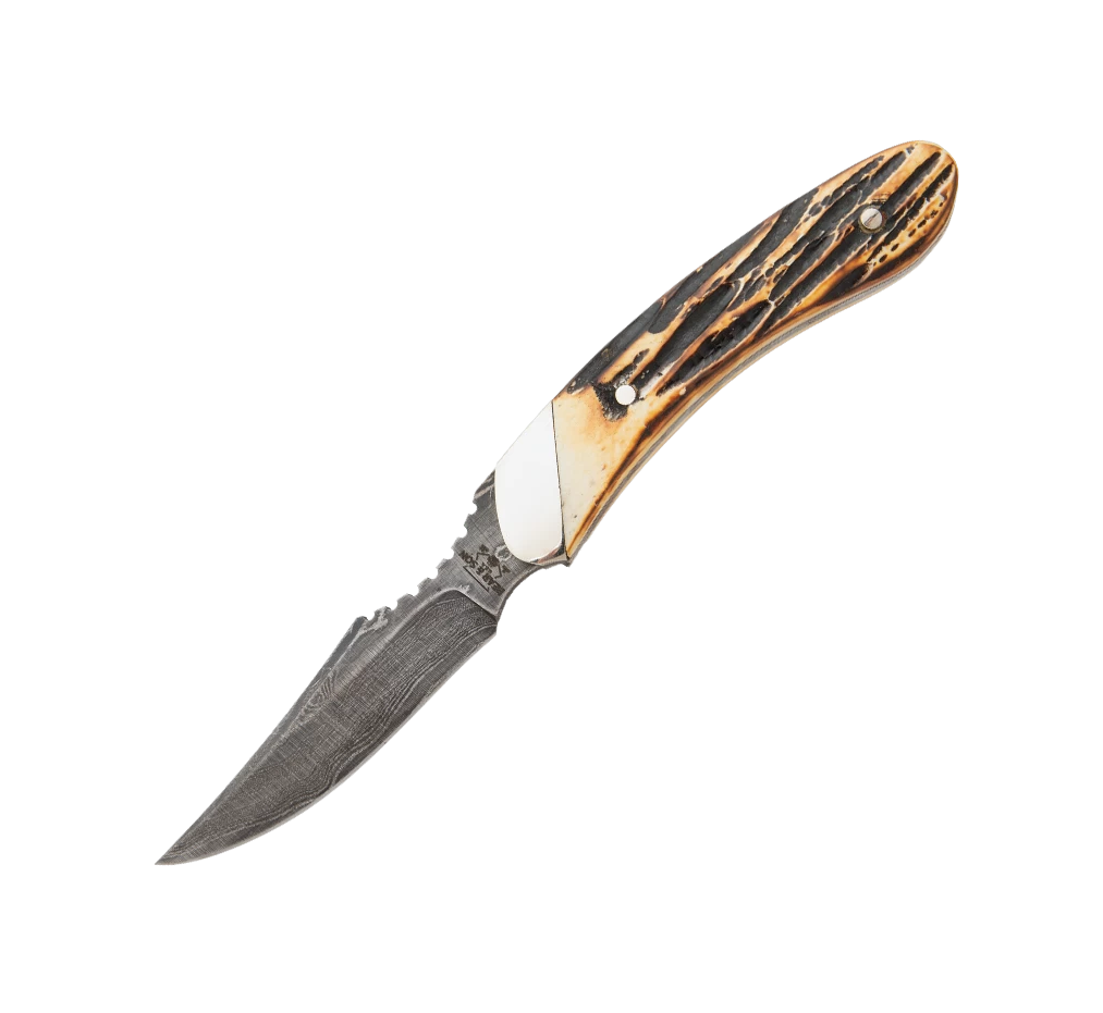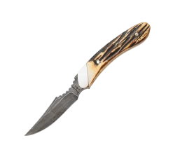 6 3/4 in. Genuine India Stag Bone™ Damascus Caper w/Leather Sheath – 5009D