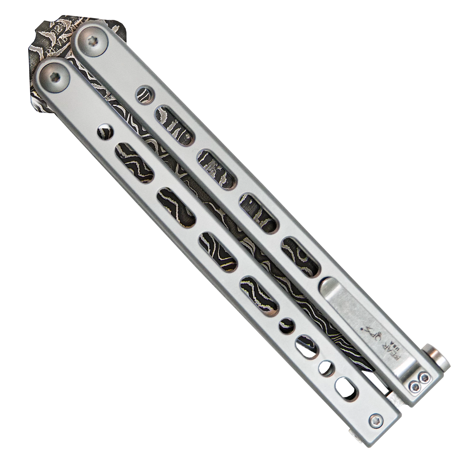 BEAR SONG® VIII GREY STAINLESS HANDLE W/ DAMASCUS BAYONET BLADE