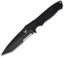The 141SBK Nimravus is a well-built, high quality fixed blade knife. The 154-CM stainless steel tanto blade has a tactical black BK1 finish and a partially serrated edge. The full tang handle is ergonomically shaped and features a deep index finger groove and a notched thumb ramp above for superior hand grip. The black handle scales are anodized 6061 T-6 aluminum for lightweight performance. The Benchmade Nimravus line of knives come with a tough MOLLE compatible nylon sheath. The Benchmade Nimravus Knife sheath is also available separately.