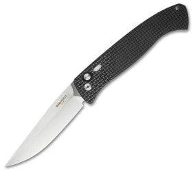The Large Brend Auto #1 measures in at almost 11 inches overall! It’s a big knife by any standard. The Brend 1 features Walter Brend’s famous “Model 1” blade shape. It has a satin finished 154-CM blade with a plain cutting edge. The T6-6061 aluminum handle is black anodized with a full knurl texture for extra grip. The Brend Auto 1 comes with a black pocket clip and heavy duty black nylon sheath. This is a giant knife, but despite the size, it’s remains one of the fastest autos on the market.