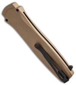 The Dark Angel from Protech is a beautiful knife with a sleek look. This single action out-the-front knife has great action that is quick and controlled. The dagger blade has a double edge and a DLC Black finish. The aluminum body is Desert Sand anodized. The Dark Angel also features a safety for added security and a pocket clip for carry. Includes durable nylon sheath. The Dark Angel is a fine collection piece!