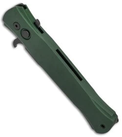 This Don knife features a solid, smooth green anodized aluminum handle. The blade is black finished along with the deep carry pocket clip and hardware.
