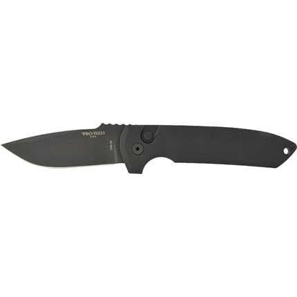 A Truly Impressive Collaboration. Black Tactical DLC Coated Plain edge CPM- Steel Blade. Blade is etched with the Protech logo on the front side and with the Les George Cross on the back. Black smooth 6061-T6 aluminum handle. Tip-up carry pocket clip. Protech has superb action, lockup, fit and finish making it a top-notch knife.