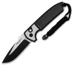 This automatic knife collaboration is an impressive adaptation of the custom Rockeye folder from Les George. It’s a Protech and carries their signature action, lockup, fit and finish. This model features a two-tone finished handle and blade.