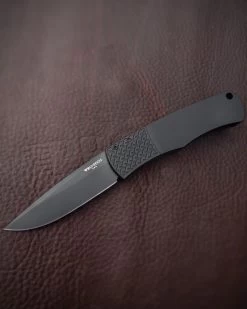 The Magic BR-1.7 has a black finished 154-CM steel blade and black anodized 6061-T6 aluminum handle with a black patterned bolster release.