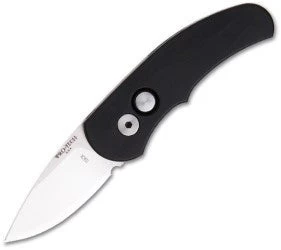 The Runt J4 has an 154-CM stainless steel California legal blade (satin, plain). The black anodized handles are milled from T-6061 aircraft aluminum. Despite the knife’s small size it feels very good in the hand (it feels much bigger than it is) and has superb action. It opens like a rocket and locks up solid. The Runt J4 also has a TiNi pocket clip.