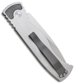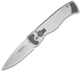 The Pro-Tech Tactical Response 2 auto series feature a razor sharp spear point blade for daily use or load out on any first responder. The handle of the TR2 is borrowed mainly from the TR1 with solid T6 aircraft grade aluminum with a form fitted pistol style grip, the TR2 comes in a variety of handle and blade finishes but over all is a perfect bang-for-your-buck auto from this California maker. The TR2 features a pocket clip with tip-up carry and is finished to match the blade. The tactical response series from Protech represent the brand well with hard hitting auto action and vise like lock-up.This auto features a satin finish stainless steel handle with black lip pearl inlay on push button. Satin finish blade.