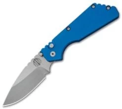 This Strider/Protech PT auto is equipped with a blue handle and a stonewashed blade. The Protech Strider collaboration revitalizes their popular SnG automatic model, with a compact EDC design. The Strider inspired profile remains the same, but the handle and blade have been scaled down to a more pocket friendly size. Bead blasted hardware and a deep carry pocket-clip round out the impressive EDC design.