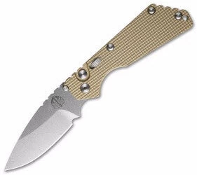 This version of the Protech SnG knife has a knurl pattern milled 7075 aluminum handle with a desert tan anodized finish and front-mounted safety. The blade is Stonewashed coated 154-CM stainless steel, operable using the firing button. And, keeping true to the original, the SnG Auto is outfitted with a Strider titanium pocket clip.