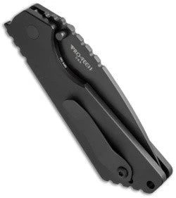 This version of the Protech SnG knife has a smooth 7075 aluminum handle with a black hard coat anodized finish. The blade is Black 154-CM stainless steel, operable using the firing button. And, keeping true to the original, the SnG Auto is outfitted with a Strider titanium pocket clip.